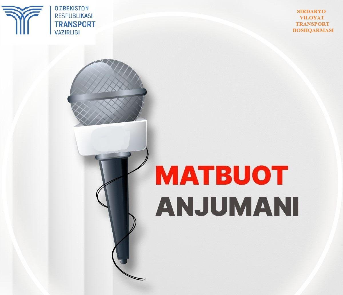 2025-yil 10-sentabr kuni soat 10-00 da Sirdaryo viloyat transport boshqarmasi binosida “Transport vositalarini litsenziyalash bo`yicha” Transport tashuvlarini muvofiqlashtish bo‘lim boshlig‘i R.Ubaydullayev tomonidan MATBUOT ANJUMANI o'tkazilishi rejalashtirilgan. Barcha jurnalist va blogerlarni hamda yo‘lovchi tashuvchi korxona rahbarlarini MATBUOT ANJUMANIga taklif etamiz.