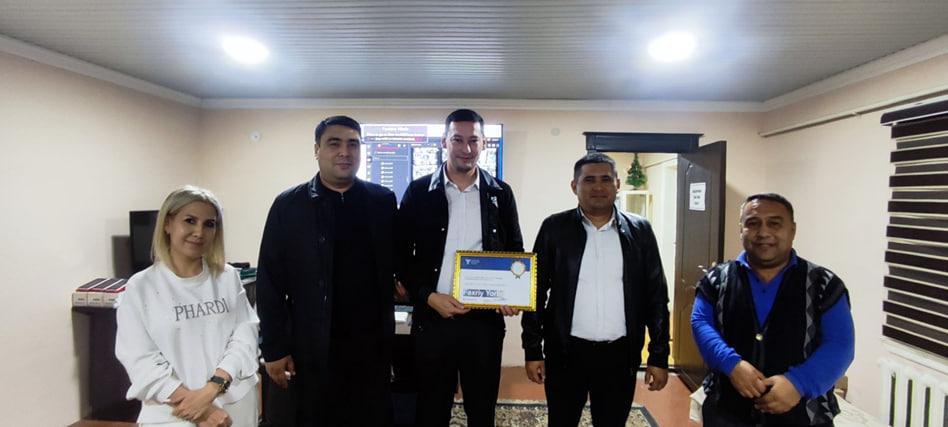 Viloyatda transport sohasida o‘zini namunali xizmati bilan mehnat qilib kelayotgan “TRANS IMKON SERVIS” MChJ rahbari U.Safarovga 26-oktabr transportchilar kuni munosabati bilan Transport vazirligining faxriy yorlig‘i hamda qimmatbaho sovg‘alarini topshirdi va bayram tabrigini yo‘lladi.